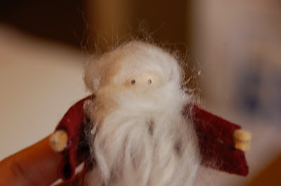 14 - Take a 6" piece of embroidery floss, run it through the top of his cape and tie at the top. You are done and he can now hang on your tree.