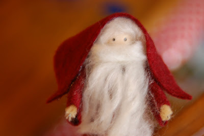 5 - Glue the beard on to his face pressing all the yarn in to the glue to make sure it all gets attached.