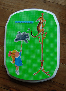I have been collecting some vintage (and some just slightly old) children's books as of late. I have a few ideas of how I want to use them. One was this idea from Kiddley that I mentioned earlier. But, the first one that I am going to work on it a plaque for my daughter's room. I picked up the wood, printed paper, and Modge Podge tonight from the craft store. In the morning I want to paint the wood white. Then, I will decoupage the paper on and pick one of these pages - either Alice, Robbin Hood, or the little girl from Never Tease A Weasel - and decoupage it on. I will show you tomorrow how it turns out.